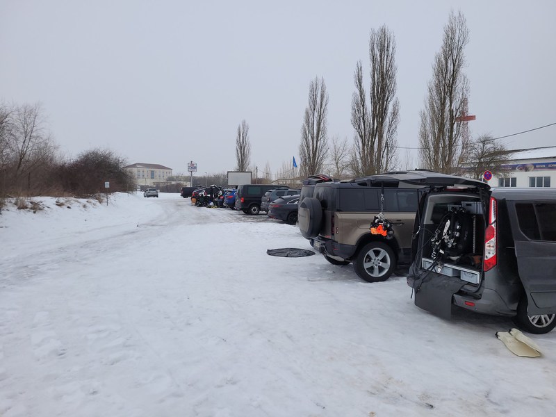 Beobachtumgen: Der ganze Parkplatz am Einstieg,belegt vom Diveteam Nord-Süd